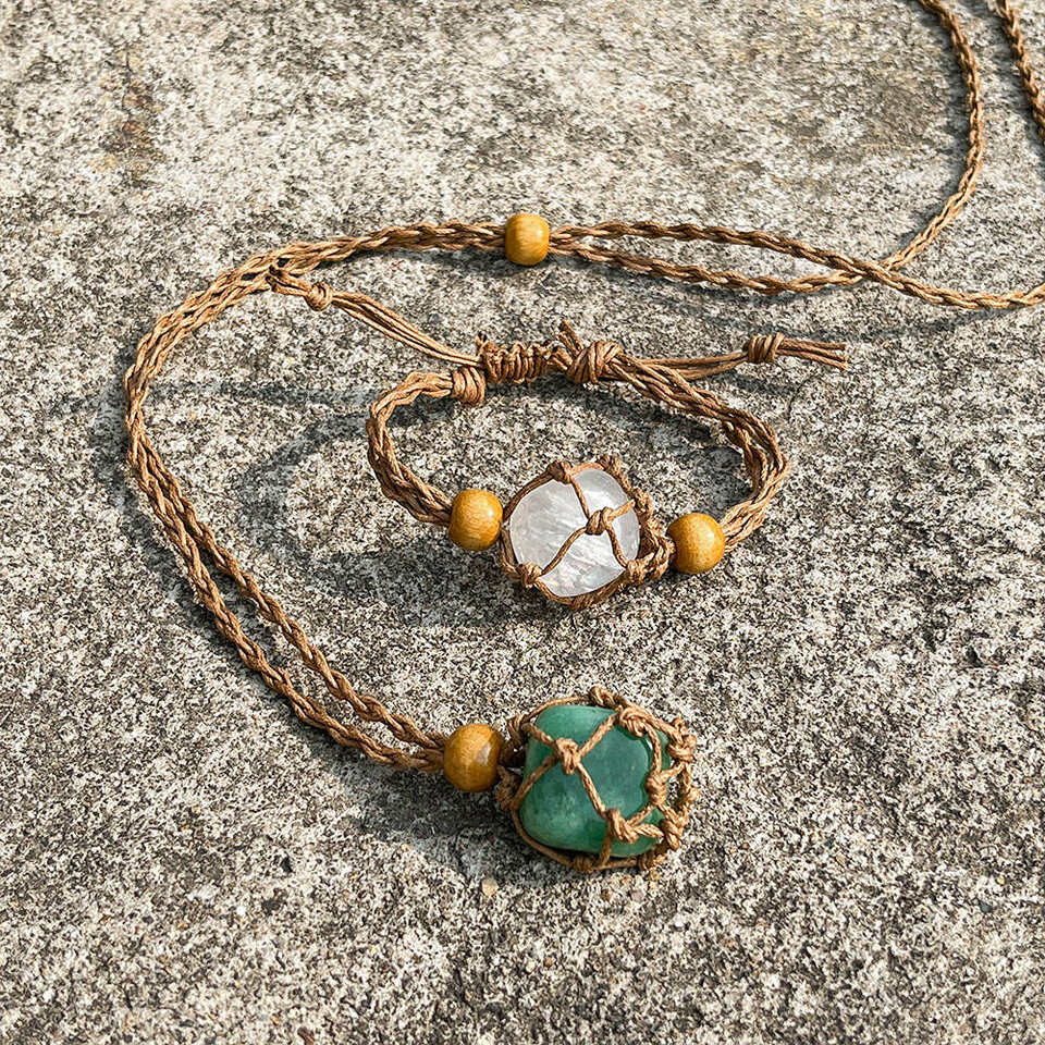 Adjustable Natural Crystal Stone Cage Cord Bracelets Necklace Empty Crystal Pendant 7 Chakra Tumbled Gem Stones Bracelets