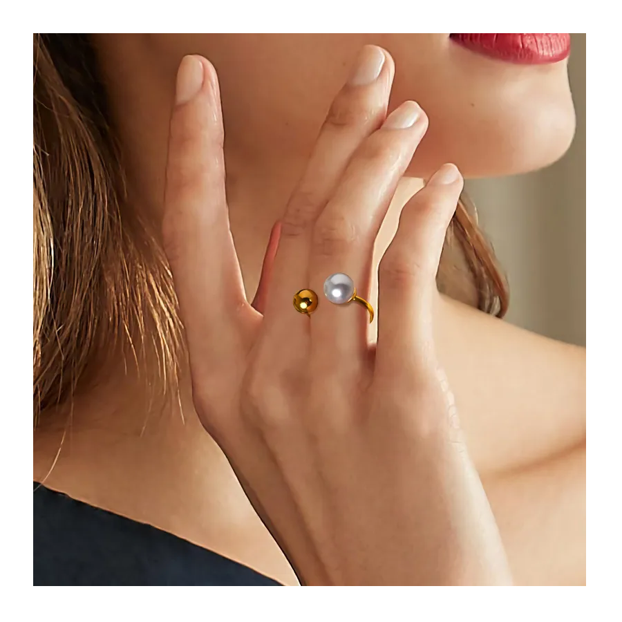 Adjustable Opening Gold Stainless Steel Ladies Ring Simple Pearl Design Straight from India Fashionable Hand Jewelry