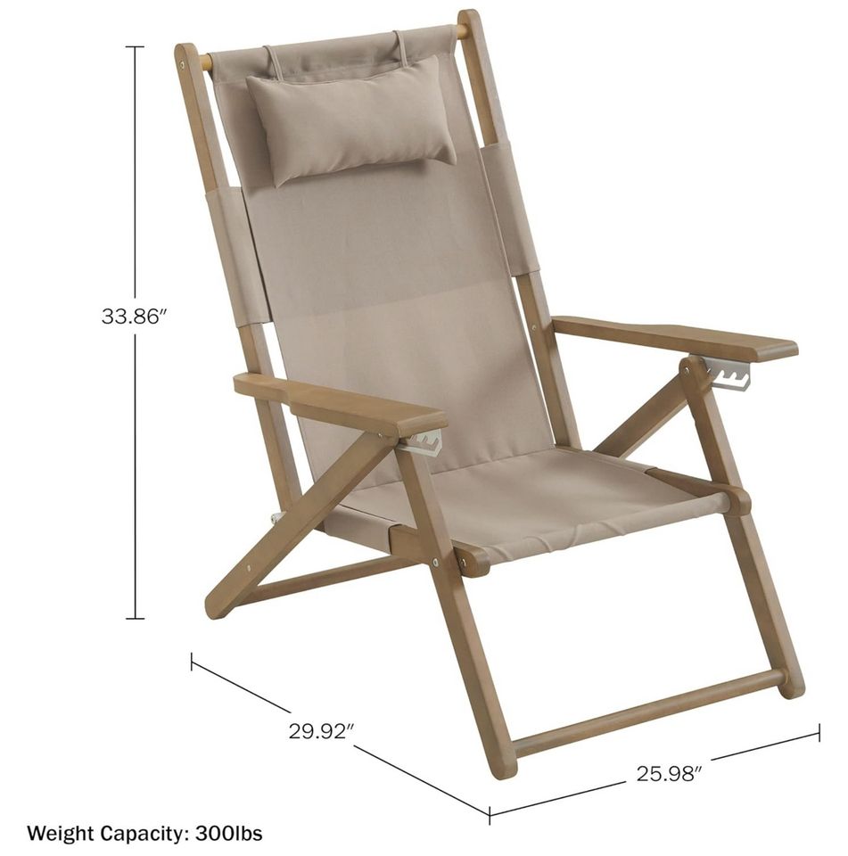 Adjustable Durable Portable Outdoor Rustic Reclining Chair Eucalyptus Wood Frame Polyester Sling | Folding Patio Lounge Chair