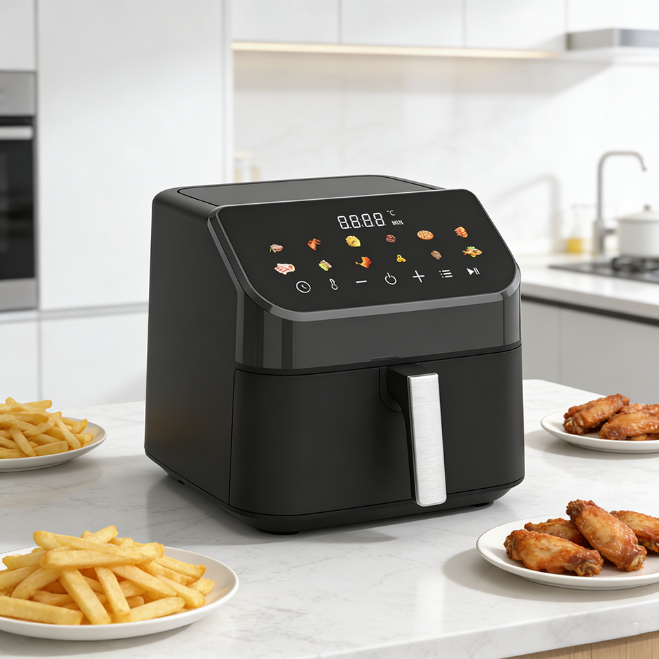 Adjustable Single Basket Air Fryer 60-200C Modern Stainless Steel Square Digital Control Touch Screen Electric Fast Cooking