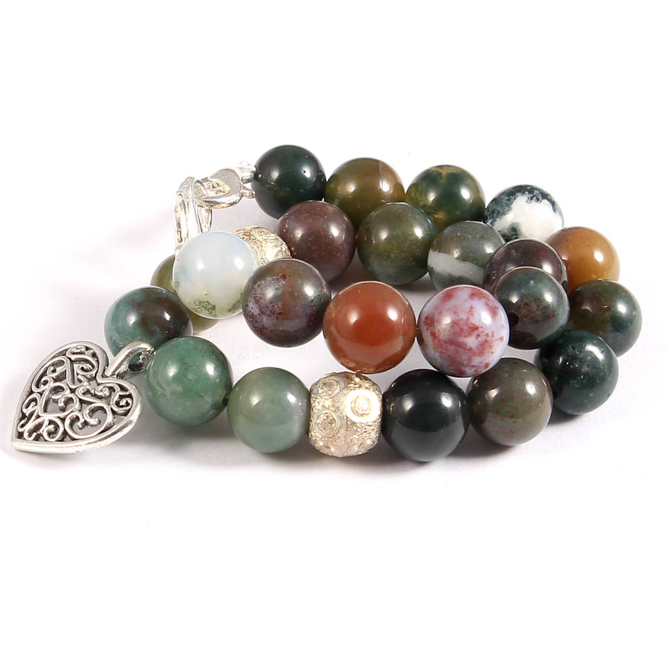 Adjustable Size Natural Agate Gemstone Beads Bracelet with Heart Pendant Crystal Healing Energy Stone for Women and Men