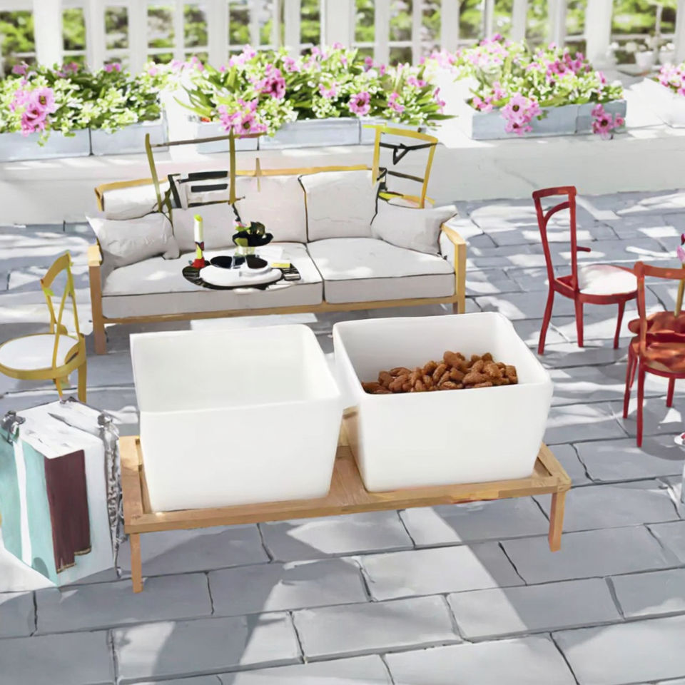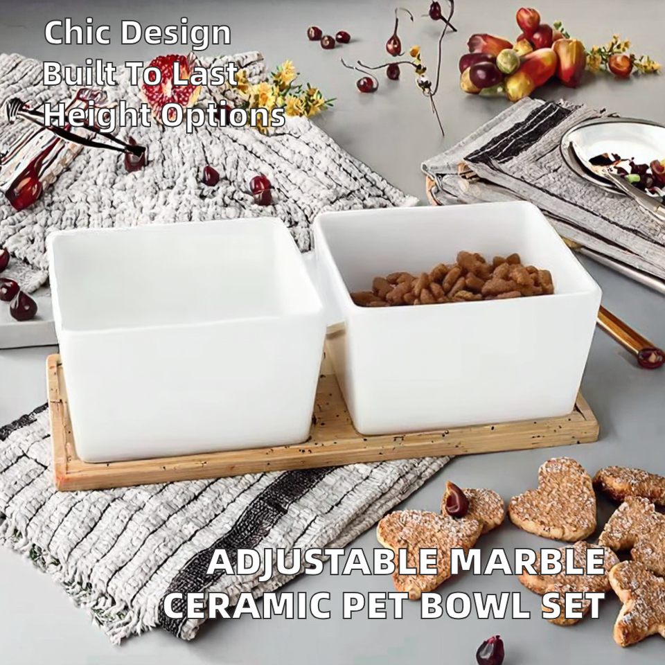 Adjustable Solid Pattern Waterproof Ceramic Dog Cat Food Water Bowl Elevated Wood Bamboo Stand