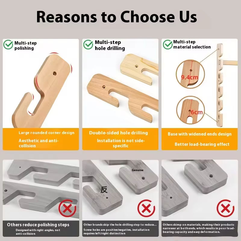 Adjustable Solid Wood Wall-Mounted Clothes Hanger Supports Any Size Wardrobe Rods Children's Wardrobe Hardware