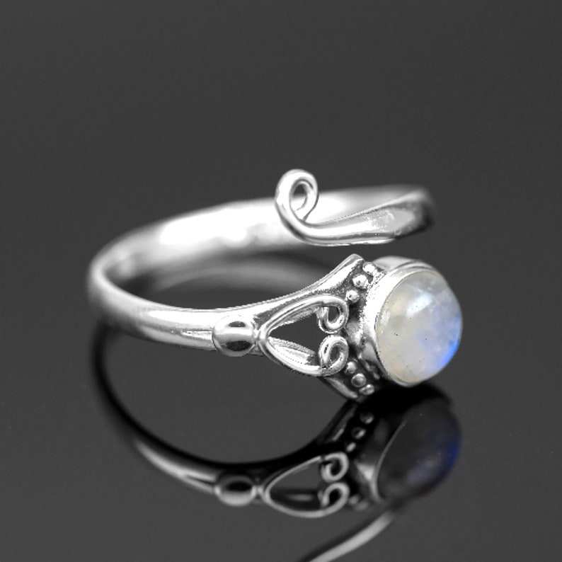 Adjustable Sterling Silver Round Moonstone Ring with Oval Cut Diamond Bezel Setting for Weddings or Parties