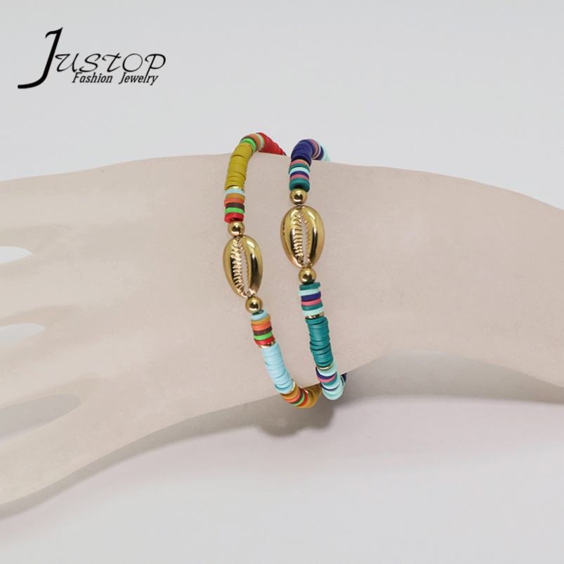 Adjustable Summer Vacation Beach Bohemia Women Hawaiian Style Handmade Stainless Steel Chain Link Hand-Woven Seed Bracelets