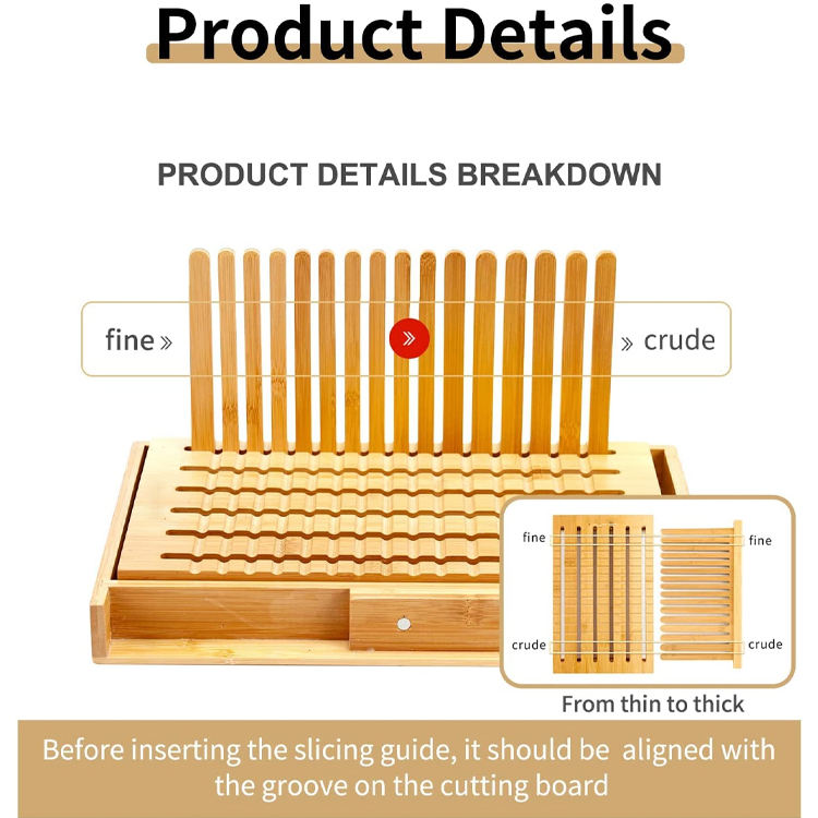 Adjustable Thickness and Width Slicing Guides Bamboo Bread Cutting Board With Crumb Tray Bread Cutter for Cakes,Bagels