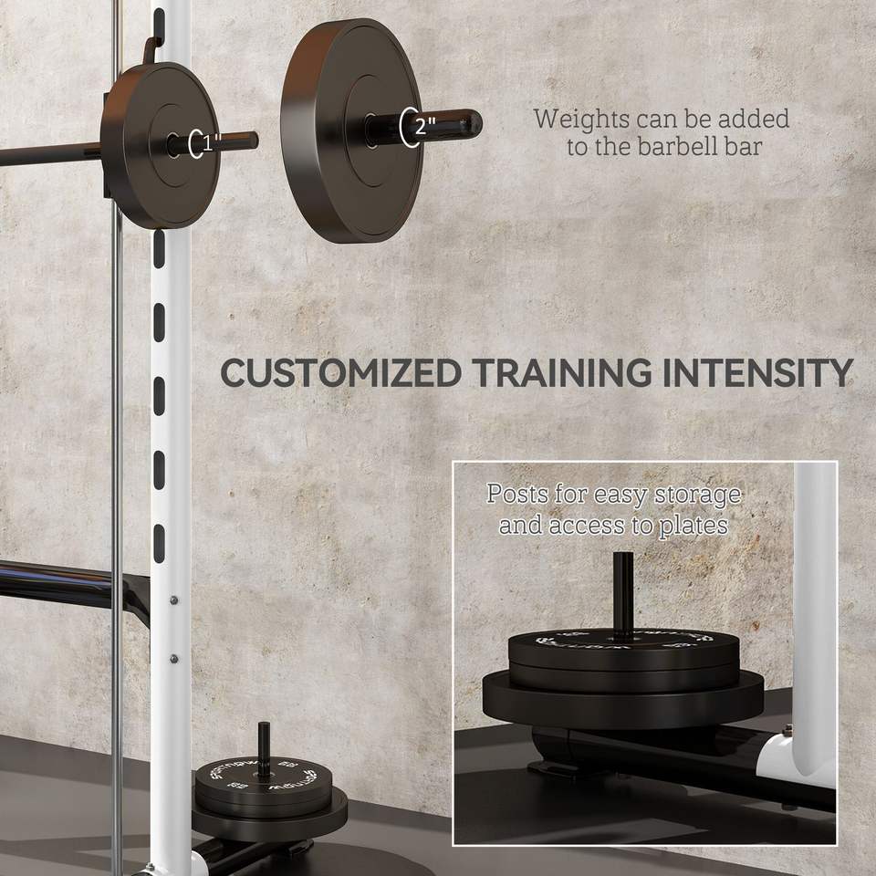 Adjustable White Half Rack Multi-Function Home Gym System with Squat Rack Pull-Up Bar Barbell Bar for Weight Lifting Bench Press