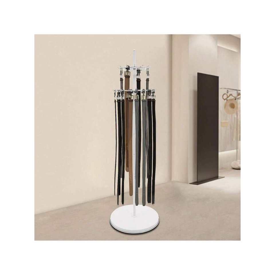 Adjustable White Metal Tie Belt Rack Floor-Mounted Display Shelf for Belt Storage and Display