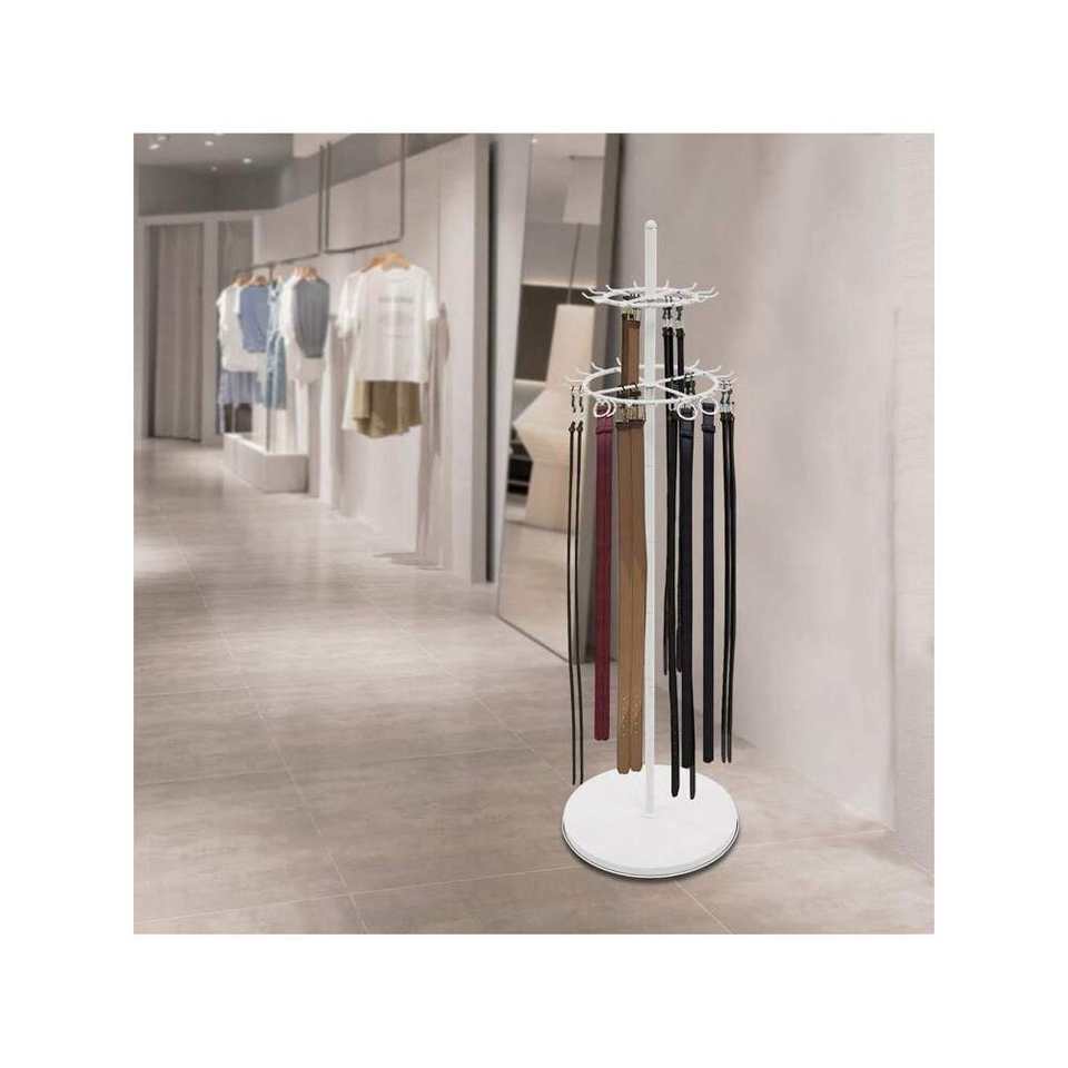 Adjustable White Metal Tie Rack Floor-Mounted Belt Hanger and Display Shelf for Ties & Accessories Storage
