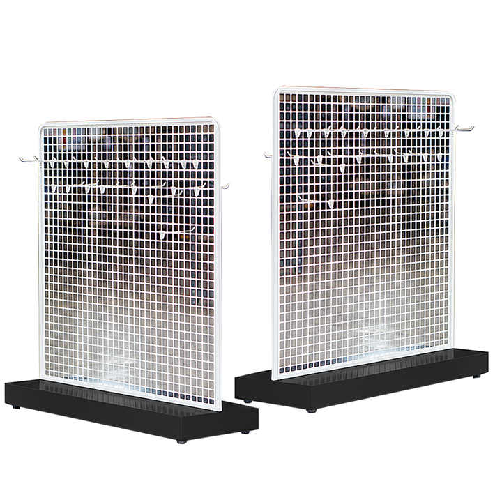 Adjustable Wire Back Center Island Rack | Heavy Duty LED Lit Modern Freestanding Convenience Store Shelves OEM
