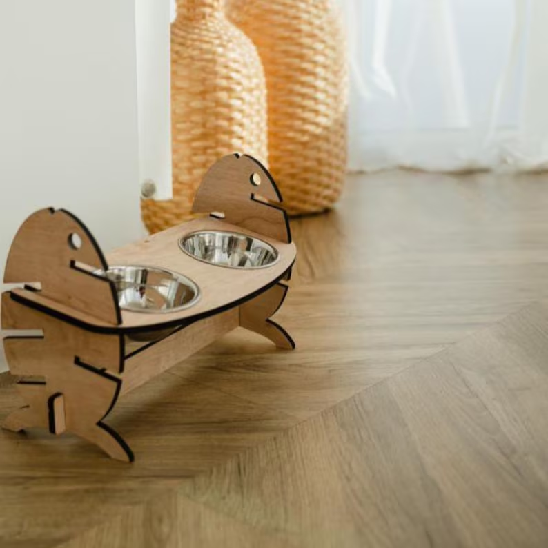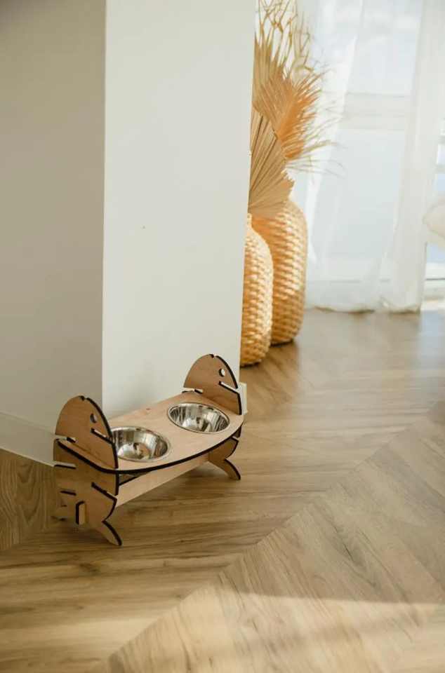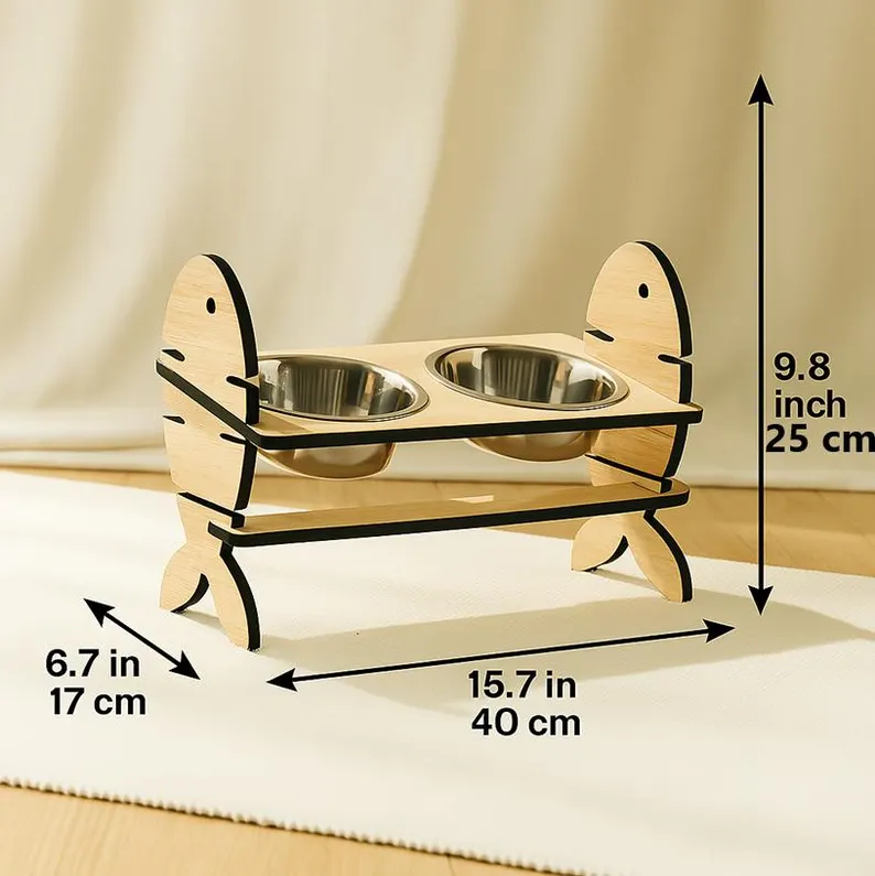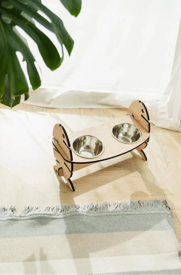 Adjustable Wooden Raised Pet Bowl Stand Stainless Steel Bowls ODM OEM Double Dog Feeder Cat Bowl for Elevated Pet Food Holder