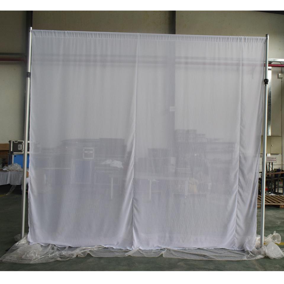 Adjustable event stage pipe and drape backdrop for studio exhibition