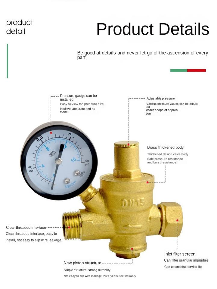 AdjustableThread Water Control Regulator Pressure Reducing Valve with Water Gauge Adjustable Brass WaterPressure Reducing Regula