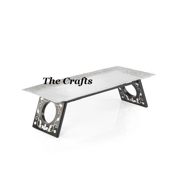 Admirable Design Stainless Steel Serving Tray With Wooden And Mother Of Pearl Stand Chocolate Tray At Good Prices