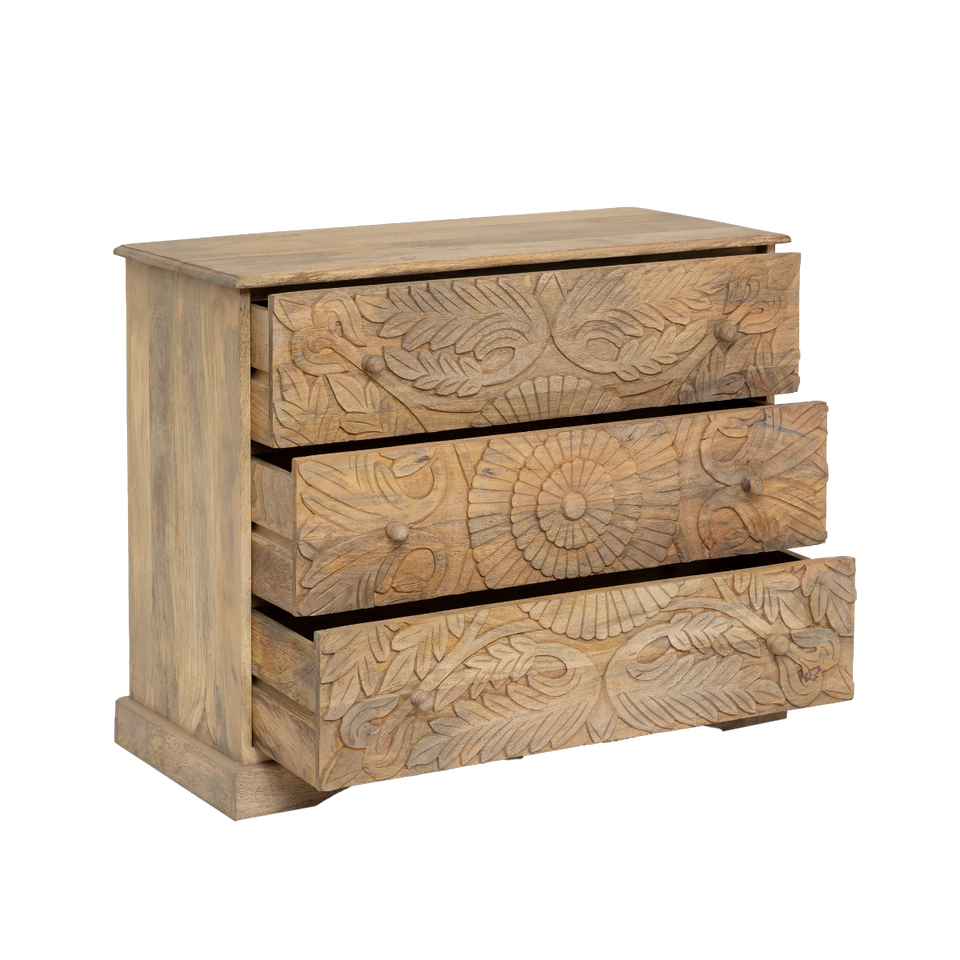 Adonie carved mango wood chest of drawers
