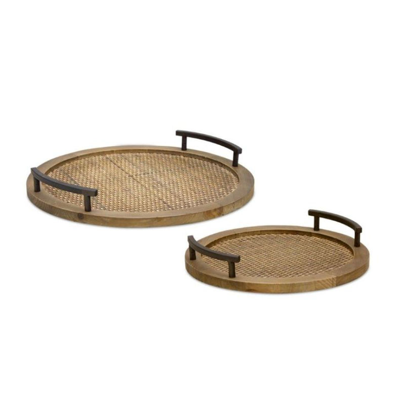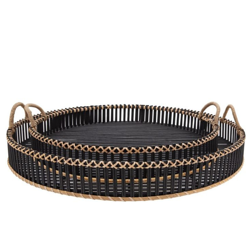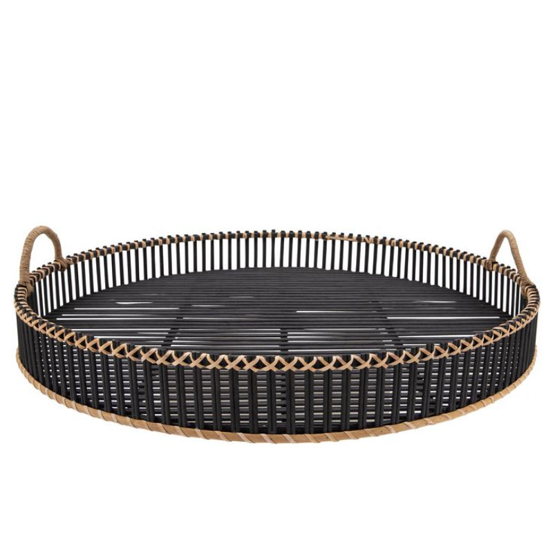 Adorable Black Round Rattan Tray With Elegant Handwoven Design Perfect For Serving Snacks Drinks And Home Decor