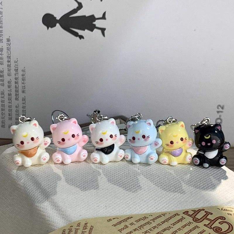 Adorable Cartoon Cat Phone Charm Cute Resin Keychain for Girls Kawaii Bag Accessories for Girlfriend Gift Valentine Day Present