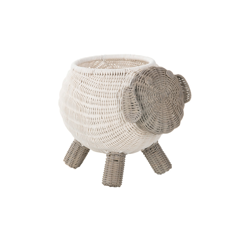 Adorable Handmade Rattan Sheep Basket Kids Toy Storage Organizer Cute Animal Shape Decorative Wicker Storage Bin
