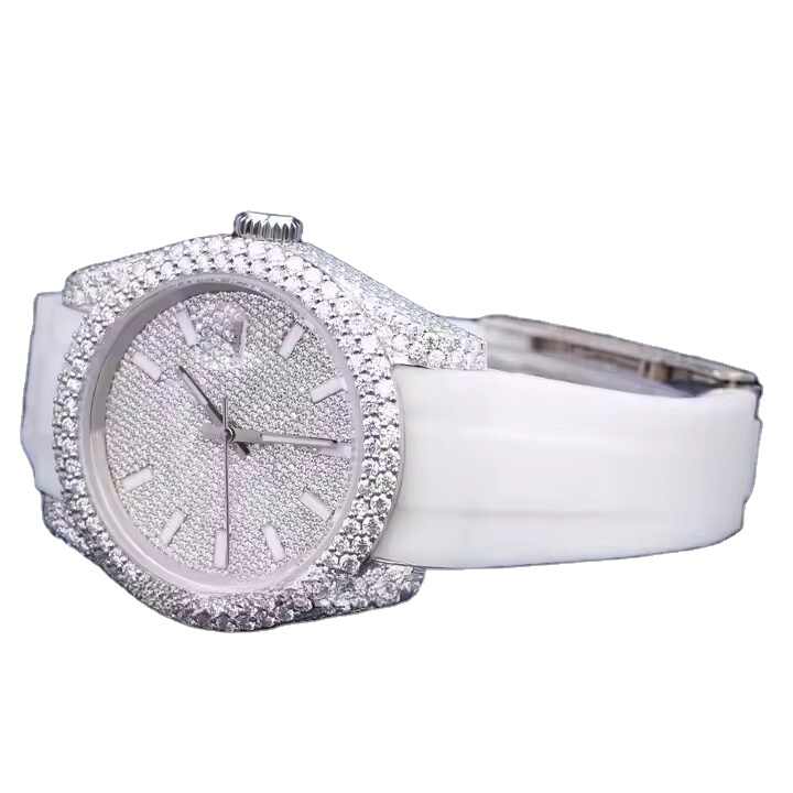 Adorable Hip Hop Wrist Moissanite Watch for Men Studded With Round Brilliant Cut Diamond Watch in Red Rubber Band Bulk Buy