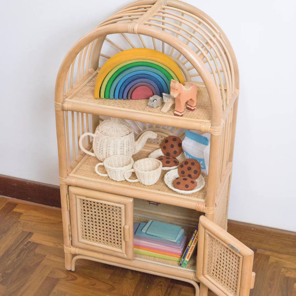 Adorable on Trend Kid Furniture Handcrafted Roomy Space for Kid Toys or Book Rattan Sunrise Two-open Tiers of Shelves