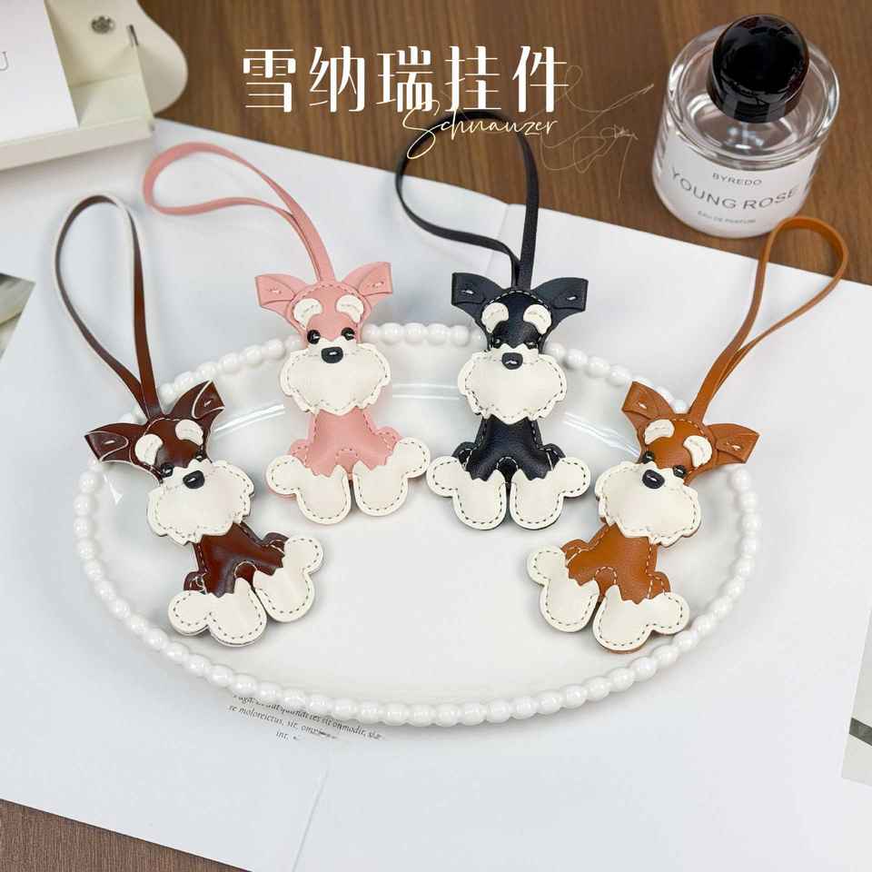 Adorable Schnauzer Dog Leather Bag Charm Realistic Pet Design Durable Key Ring Perfect Gift for Dog Lovers