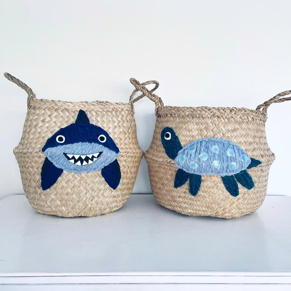 Adorable Shark Turtle Shape Embroidered Seagrass Eco Friendly Toy Storage for Nursery or Beach Style Vietnam Wholesale OEM ODM