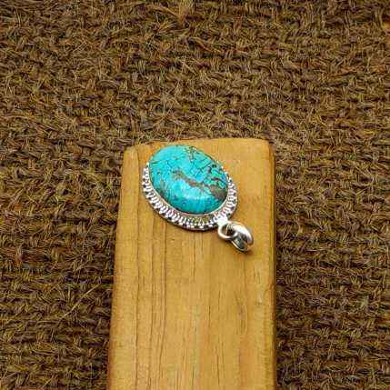 Adorable Tibetan Turquoise Gemstone Handmade Pendant Necklace 925 Sterling Silver with Rope Chain Oval Stone Jewelry