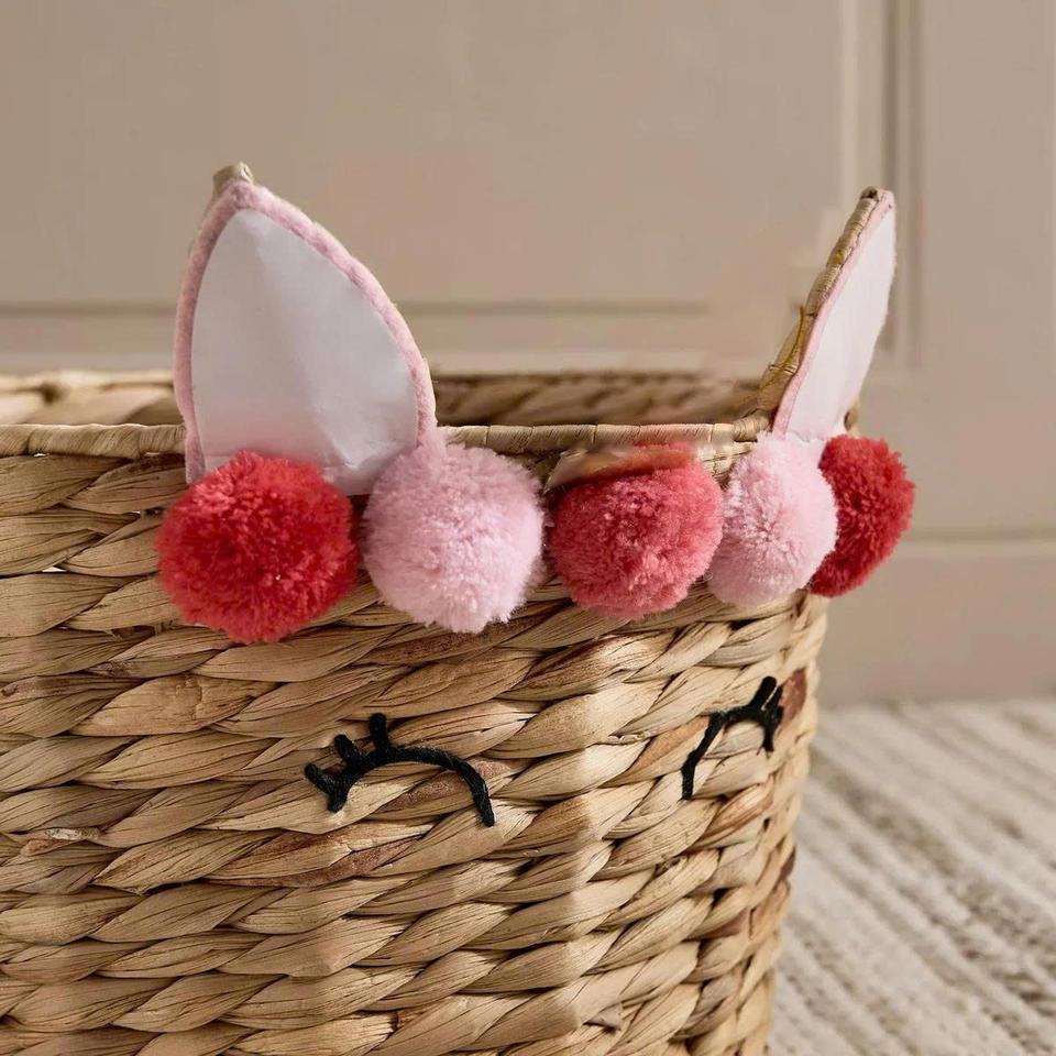 Adorable Unicorn Water Hyacinth Storage Basket With Colorful Pompom Ideal For Organizing Toys Baby Essentials And Nursery Decor