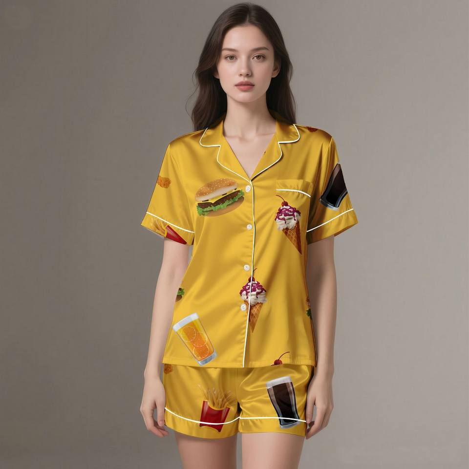 Adult 2-Piece Silk Satin Breathable Sleepwear Summer Pajamas Set Digital Printed Customizable Long/Short Sleeve Elastic