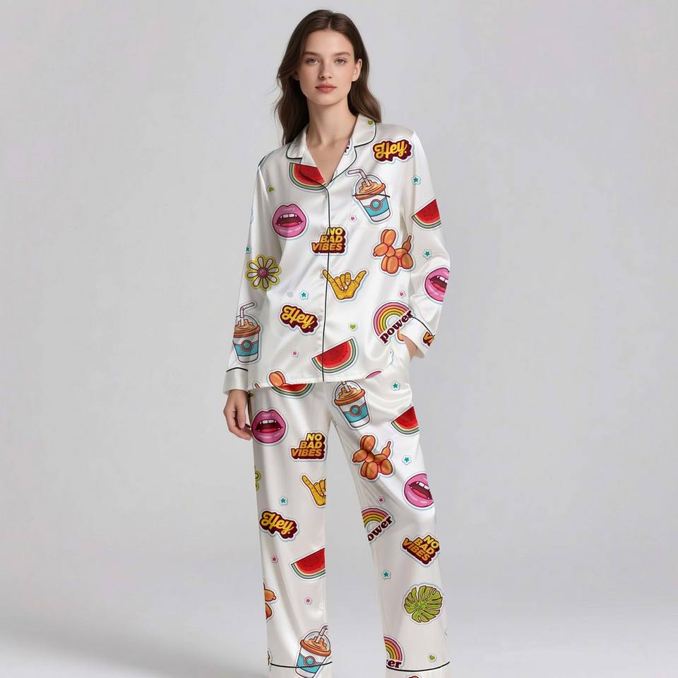Adult Elegant Silk Satin Pajamas Lightweight Digital Print Sleepwear Set Soft Breathable Luxury Home Night Wear