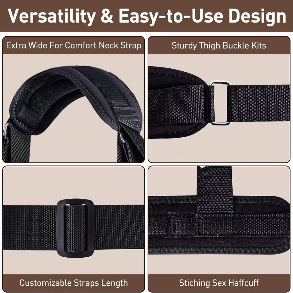 Adult Sex Bondage Kit Bed Restraints Set with Handcuffs Neck to Thigh Ankle Adjustable Leg Straps Handcuffs for SM Couples