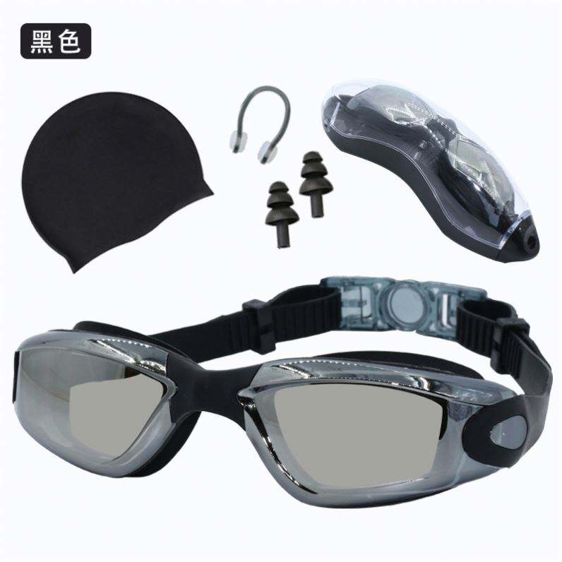 Adult Swimming Goggles Anti-fog HD Electroplating High Elastic Silicone Swimming Cap Swimming Four-piece Sets