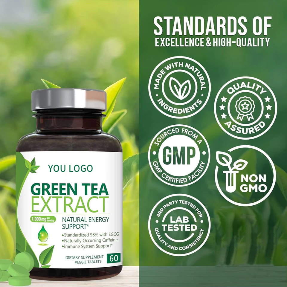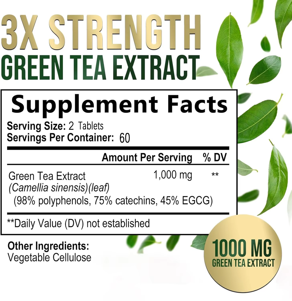 Adults Polyphenol-Rich 1000mg Green Tea Extract Tablets New L-Theanine 60% Egcg L-Tirosina Boosts Metabolism Pregnant Women