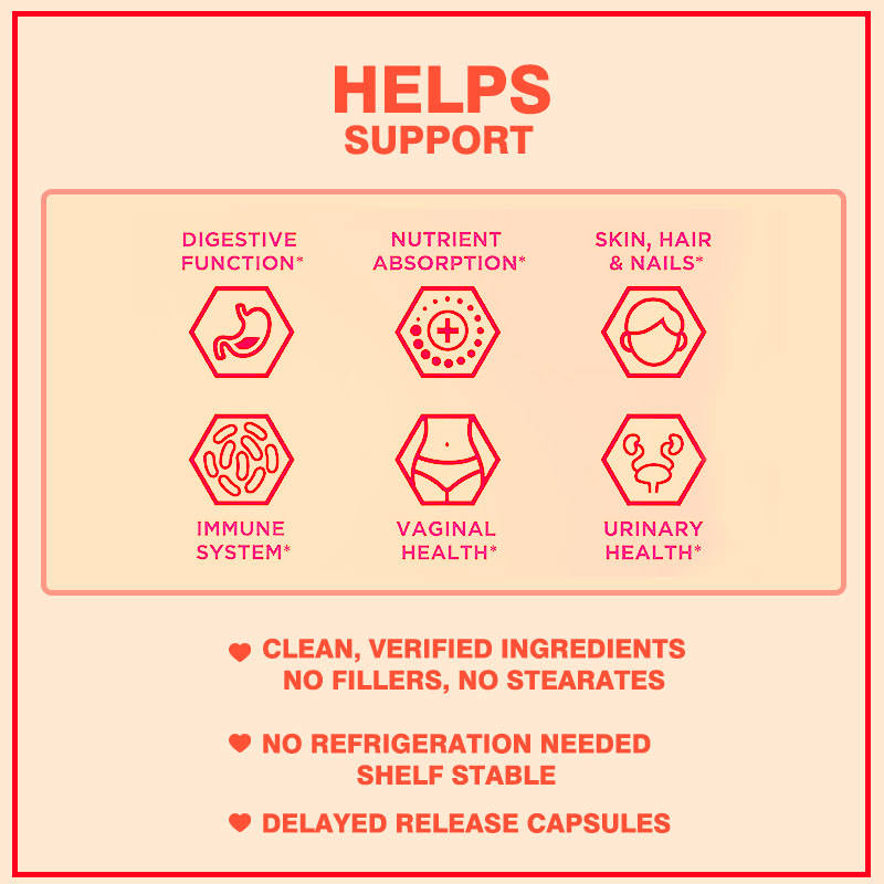 Biotin, Chromium, Hydrolyzed Bovine Collagen Peptides, Organic Inulin, Cranberry Extract, Hyaluronic Acid, Probiotic Blend