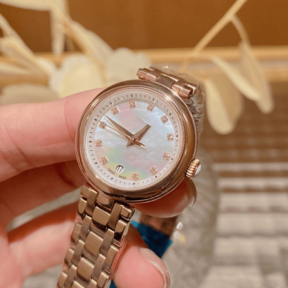 2026 New For Longinesing Compact and exquisite round white dial, gold case, diamond hour markers, mechanical watch