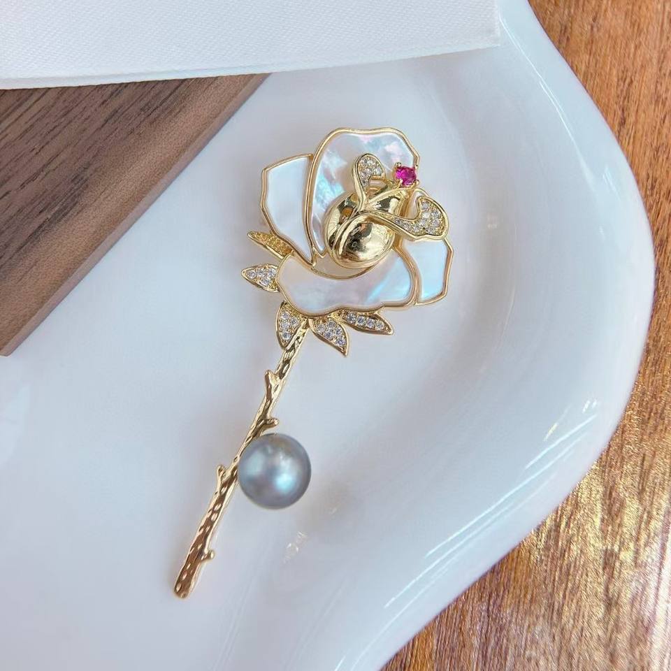 Advanced Sense Luxury Fashion Brooch Sea Water Shell with Rose Design Qixi Gift Suit Pin Wholesale Quality Product