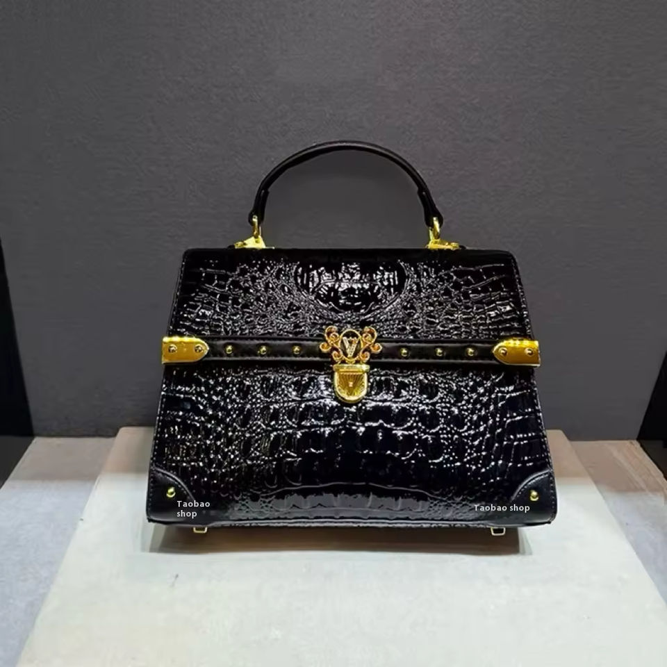 Advanced Women's Genuine Leather Portable Lock Geometric Pattern Shoulder Messenger Bag Niche Cross-Border Fashion Tote Bag
