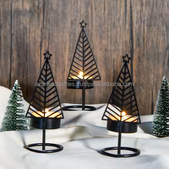 Advent Black Bow Pillar Candlesticks Black Metal Candle Holder Tealight Medium Window Candle Holders