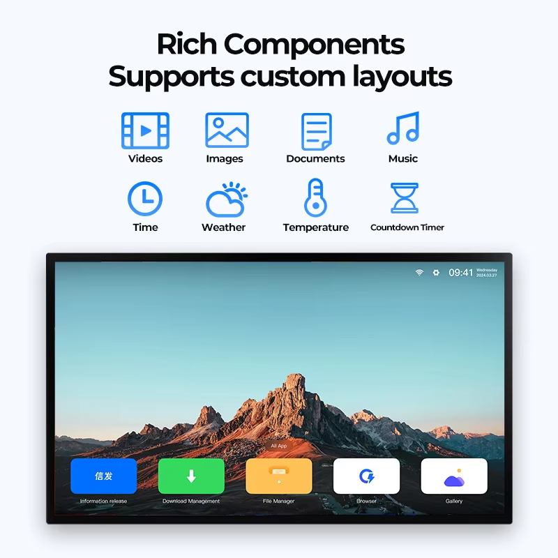 Advertising Animation Graphics Cloud-Based CMS Hanging Wall Mounted Kiosk 4K Touch Screen LCD Digital Poster