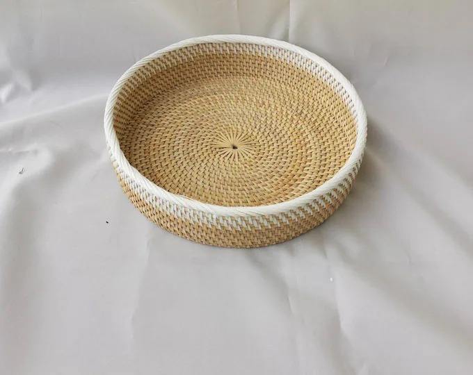 Aesthetic Handicrafts Round Rattan Seashell Serving Tray Festive Christmas Gift Decorative Tableware for Home Decor