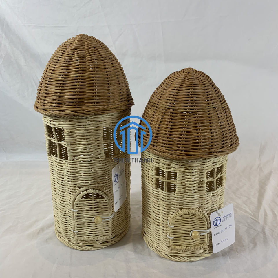 Aesthetic Imaginative Touch to Your Kids Space Meticulous Care From a Robust Rattan Weave House Shaped Rattan Kid Basket Set