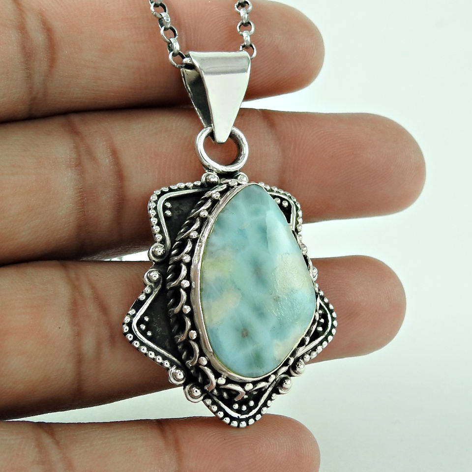 Aesthetic Pendant for Birthdays Parties 925 Sterling Silver Natural Larimar Gemstone Unique Design Boho Pendant Handmade Jewelry