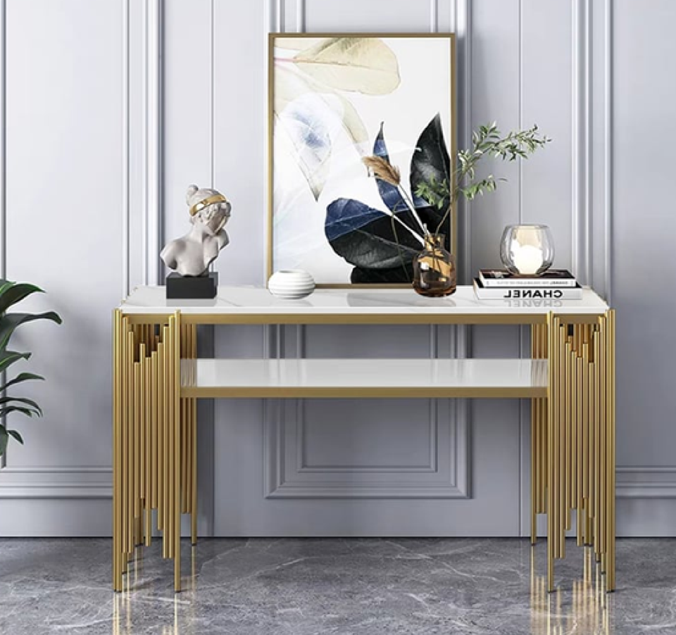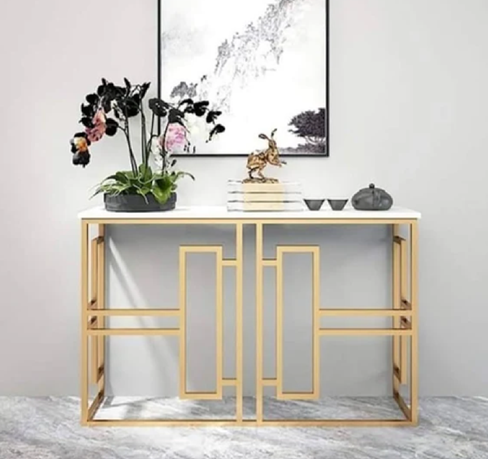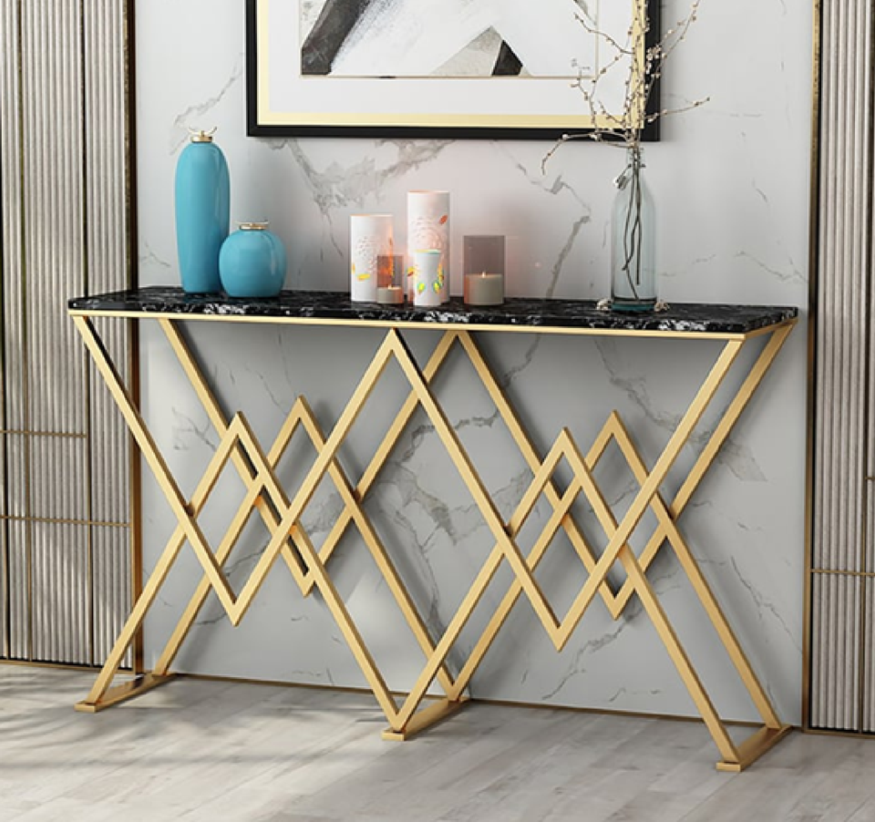 Aesthetic metal marble console tables contemporary entryway table handcrafted polished top elegant available at wholesale prices