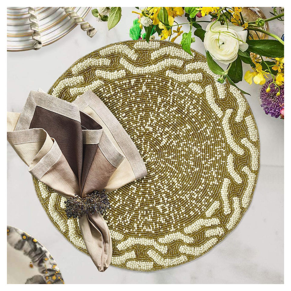 Affordable Beaded Round Placemat for Dining Table Mats Handmade Beaded 13x13 Placemat Embroidered Decorative Runner for Wedding