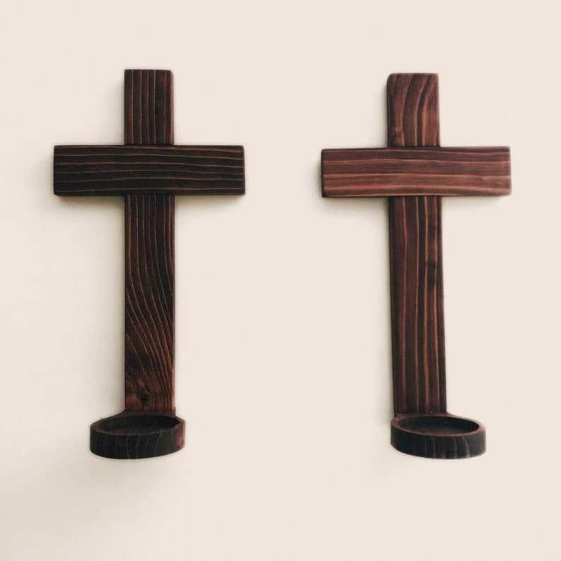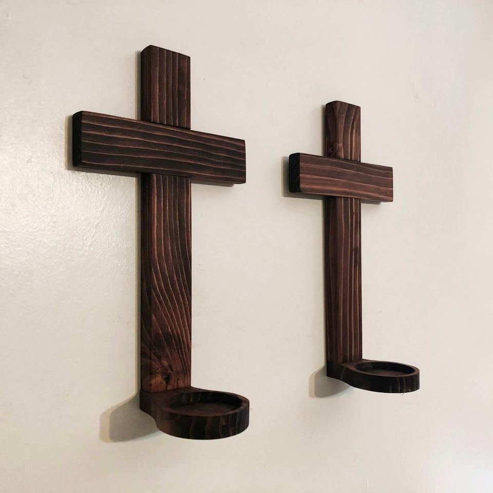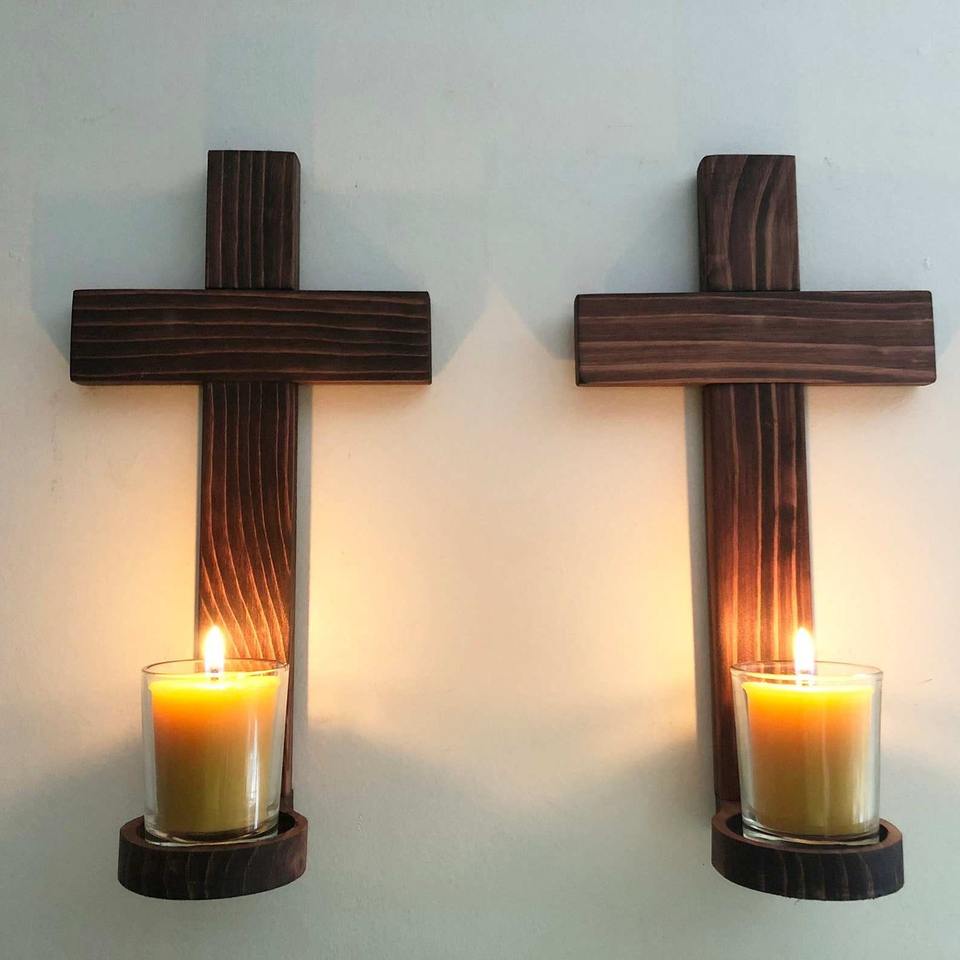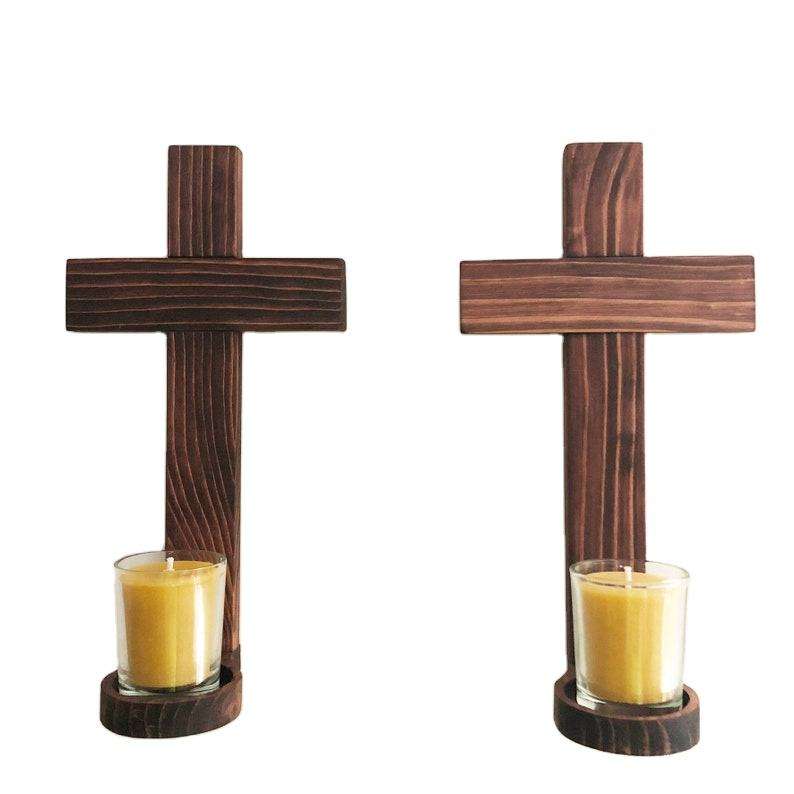 Affordable Hand Crafted Wooden Wall Crosses Votive Candle Holders Decorative Cross for Weddings Baptisms and Church Interiors