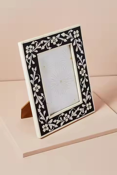 Luxury Handcrafted Eco-Friendly Vertical Bone Inlay Photo Frames for Tabletop by Crescent Crafts
