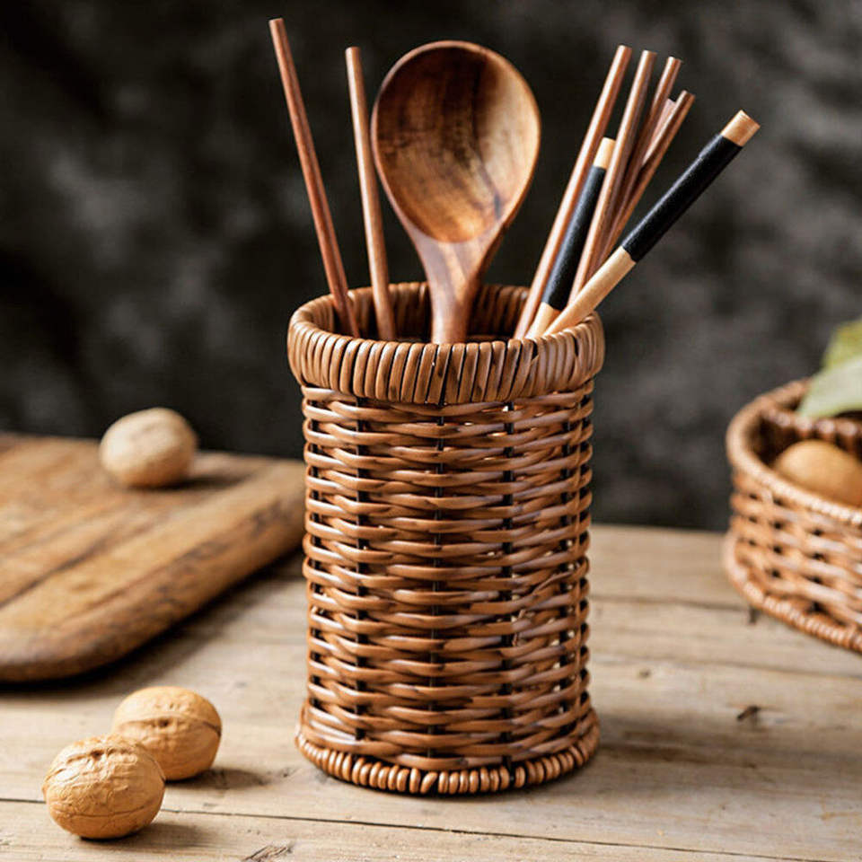 Affordable Natural Rattan Chopstick Holder Functional Rattan Mini Forks Spoons Basket for Home Restaurant