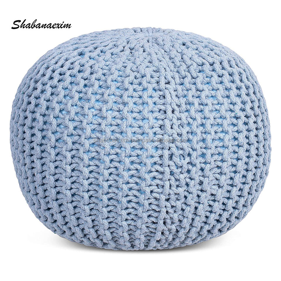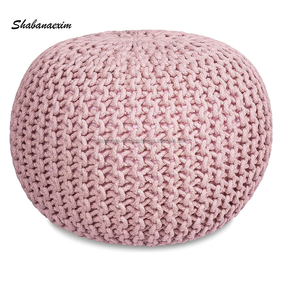Affordable New Collection of Cotton Macrame Round Pouf Footstool Handmade Crochet Ottoman Pouf Bone Inlay Console on Cheap Price