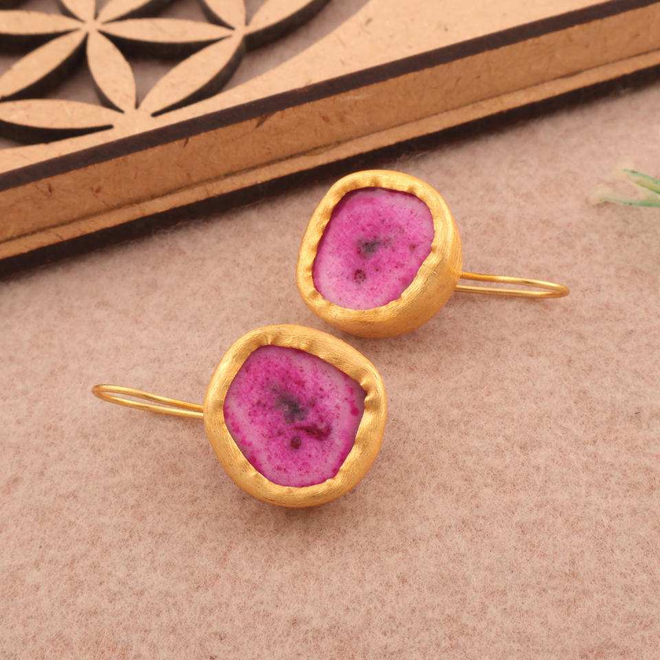 Affordable Price Handmade Wholesale Jewelry Natural Purple Solar Quartz Hook Earrings Matte Brushed Finish Gold Plated Earrings