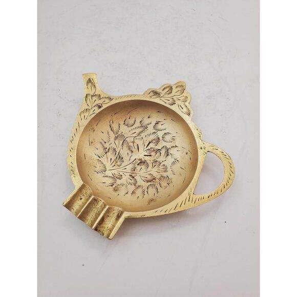 Affordable Prices Vintage Floral Etched Brass Ashtray with Golden Finished Ashtray For Home & Restaurant Uses
